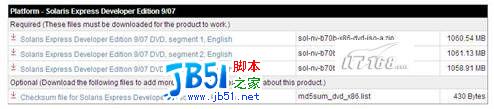 到Sun 公司網(wǎng)站上免費(fèi)下載, 網(wǎng)址是http://developers.sun.com/sxde/download.jsp 。下載時(shí)請(qǐng)注意你要下載的版本是x86 的還是SPARC 的, 另外這里只有DVD格式的iso文件,如圖1。