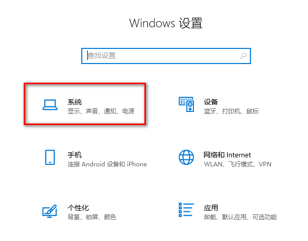 2.進入到我們的設置頁面中,你可以看到在設置頁面有很多的功能板塊,比如可以進入到應用頁面中,也可以進入到網絡和Internet中,這里我們選擇【系統】選項進入。