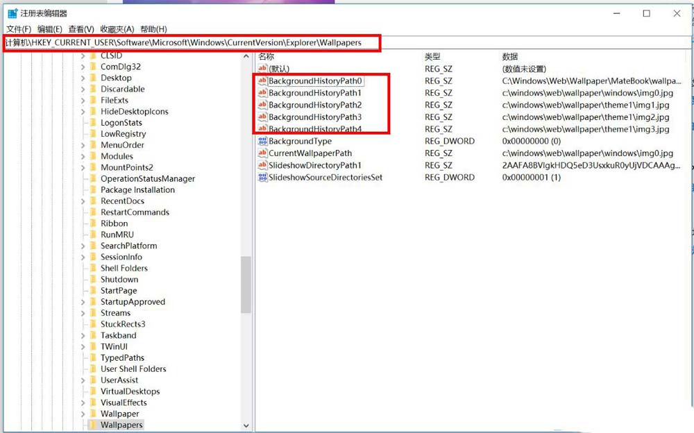 HKEY_CURRENT_USER\Software\Microsoft\Windows\CurrentVersion\Explorer\Wallpapers