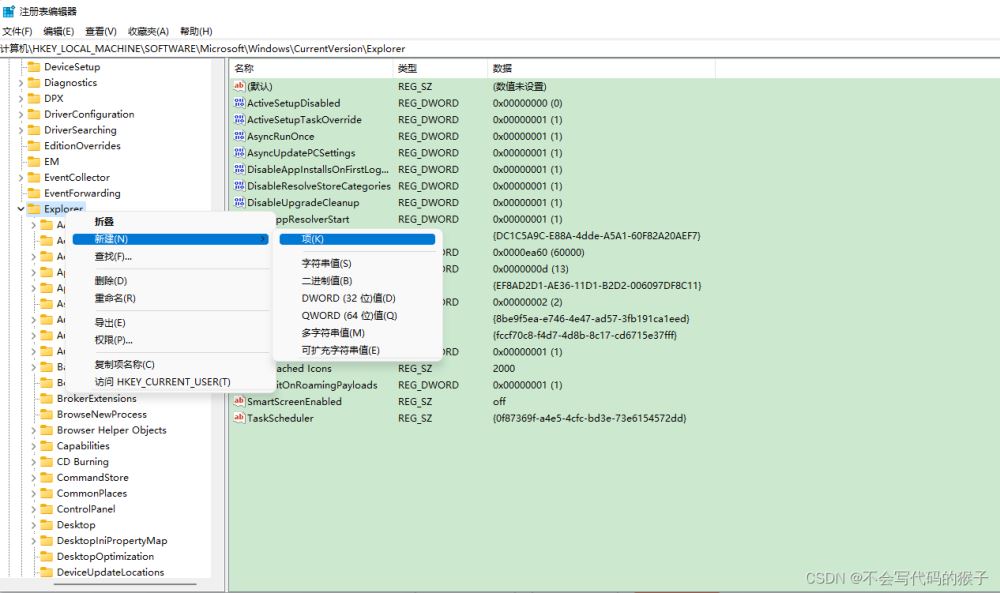 選中Explorer并且右擊,出現(xiàn)操作選項,新建->項