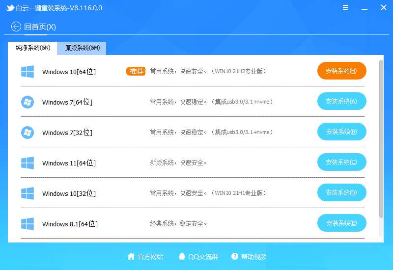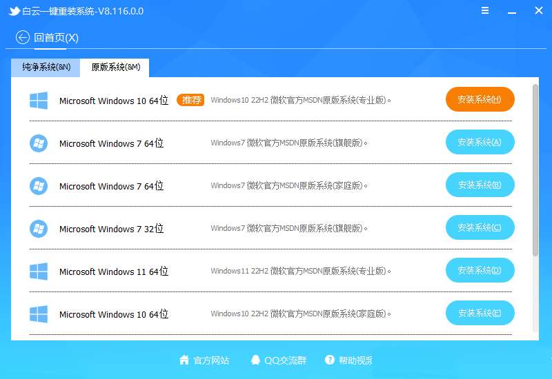 2、提供了【純凈系統】和【原版系統】,方便用戶下載并且安裝適合自己的操作系統;