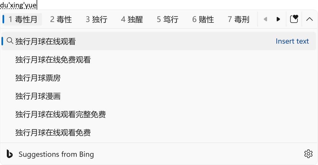 Bing 搜索建議從 IME 候選窗口擴展。