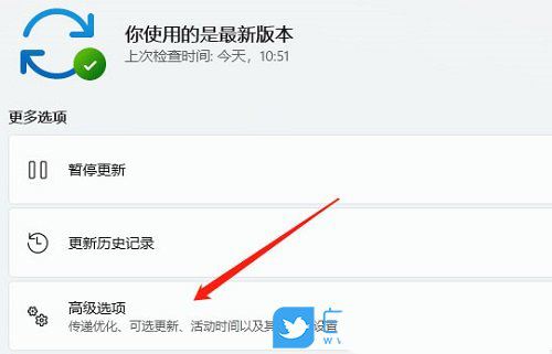 3、接著在更多選項下,點擊【高級選項(傳遞優化、可選更新、活動時間以及其他更新設置)】;