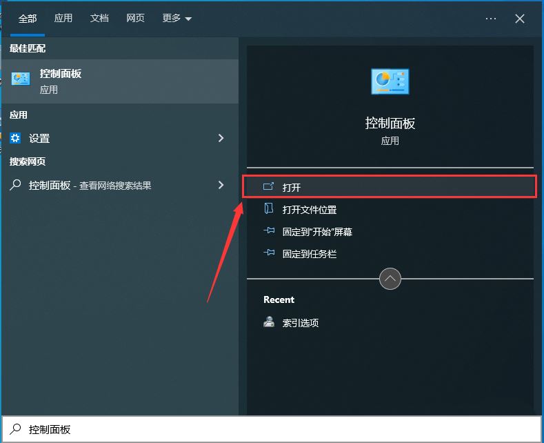 1、首先,按鍵盤上的【 Win + S 】組合鍵,打開Windows搜索,搜索框輸入【控制面板】,再點擊【打開】系統給出的最佳匹配控制面板應用;