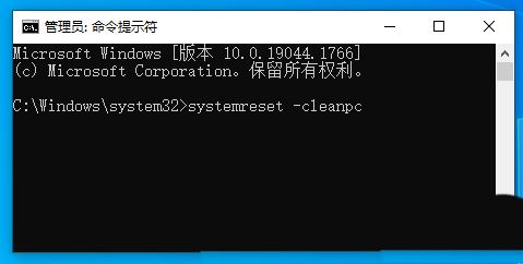 1、命令提示符中,輸入并按回車執行【systemreset -cleanpc】命令,可以喚起系統重置;