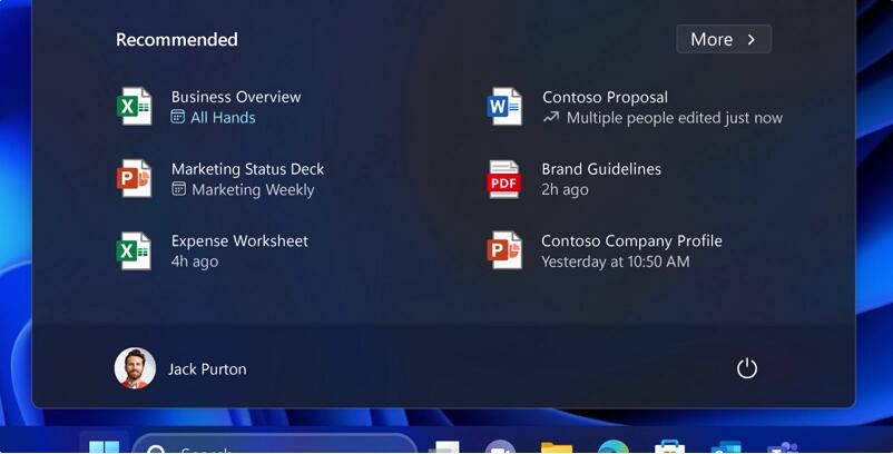 對于加入 Azure Active Directory (AAD) 的設(shè)備,微軟已經(jīng)開始在“開始”菜單中提供基于 AI 的推薦內(nèi)容。當(dāng)您打開“開始”菜單時便會發(fā)現(xiàn)相關(guān)內(nèi)容,例如可以在會議前幫您為開會做好準(zhǔn)備,或者快速打開您正在協(xié)作處理的文件等。