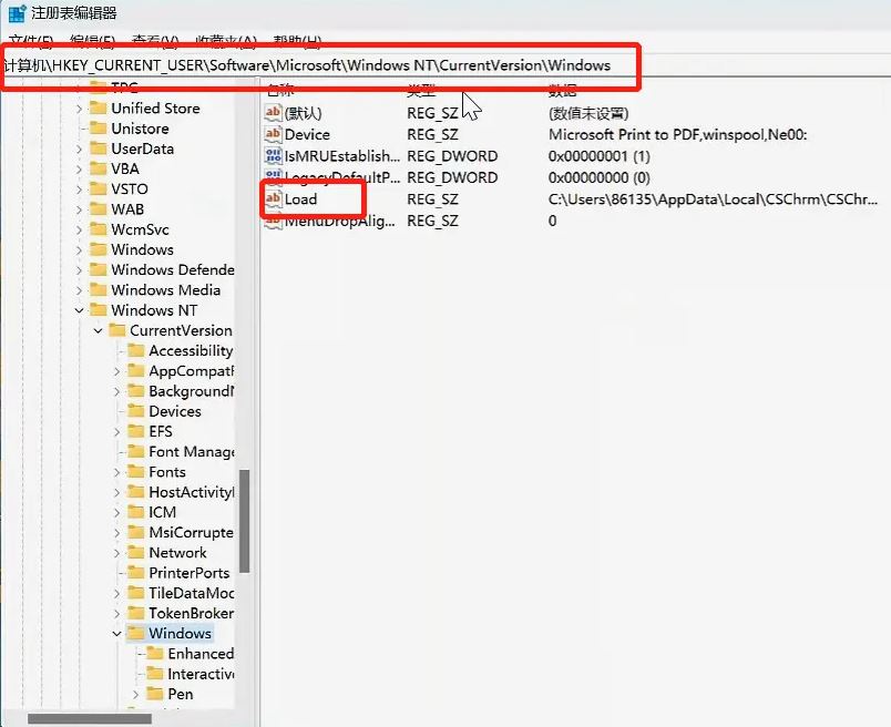 HKEY_CURRENT_USER\Software\Microsoft\Windows NT\CurrentVersion\Windows
