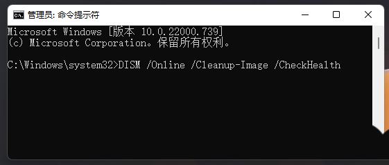命令提示符中,輸入并按回車執行【DISM /Online /Cleanup-Image /CheckHealth】命令,該命令可以用來修復Windows系統鏡像、安裝程序、恢復程序和PE系統