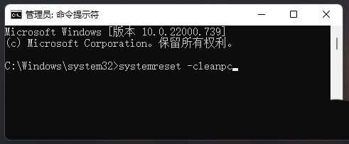1、命令提示符中,輸入并按回車執行【systemreset -cleanpc】命令,可以喚起系統重置;