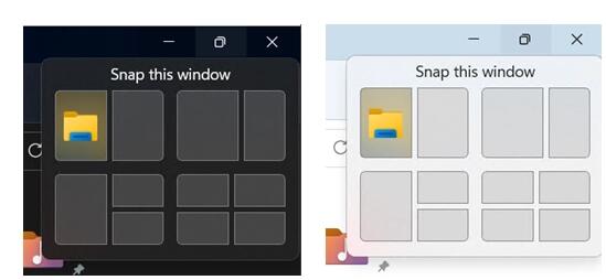 在這個版本中還有一個新的實驗性 UI,用于下拉菜單,當懸停在應用窗口的最大化按鈕上時出現。這些實驗包括在突出顯示的 Snap 區域顯示應用圖標,以及加入“Snap 此窗口”的文字,使用戶更清楚這個界面的作用。