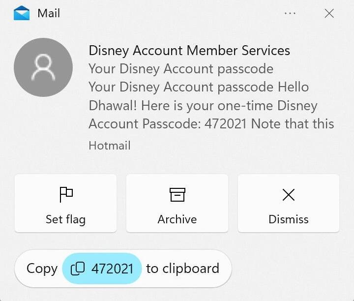 用戶可以看到“復制”按鈕,用于從安裝在 PC 上的應用程序或從連接到 PC 的手機的通知提示中快速復制雙因素身份驗證(2FA)代碼。