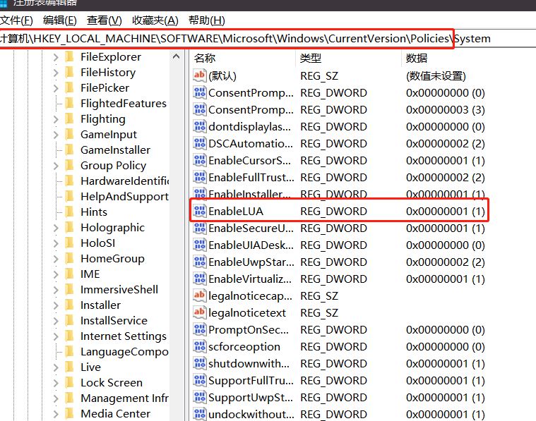 HKEY_LOCAL_MACHINESOFTWAREMicrosoftWindowsCurrentVersionPoliciesSystem。