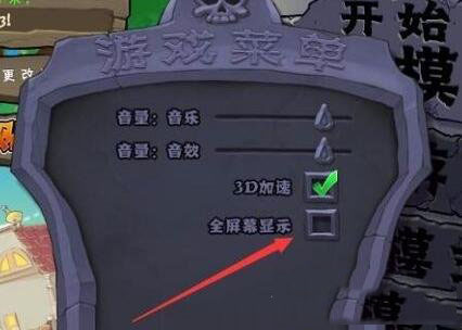 8、進(jìn)入游戲后不要著急,先來到設(shè)置,取消勾選其中的“全屏幕顯示”就可以正常游玩植物大戰(zhàn)僵尸了。