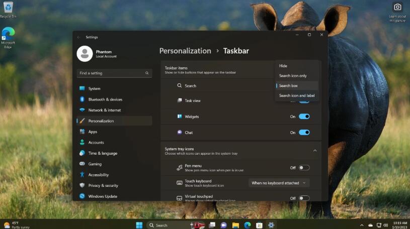 從圖中可以看到,用戶可以自由選擇任務欄搜索的樣式,包括搜索圖標、搜索框、隱藏等,開始菜單中的搜索框也迎來改進。