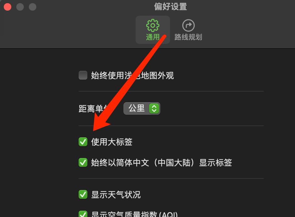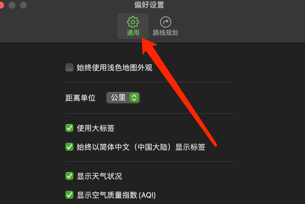 打開Mac系統地圖的通用設置,可使用大標簽。操作步驟如下: