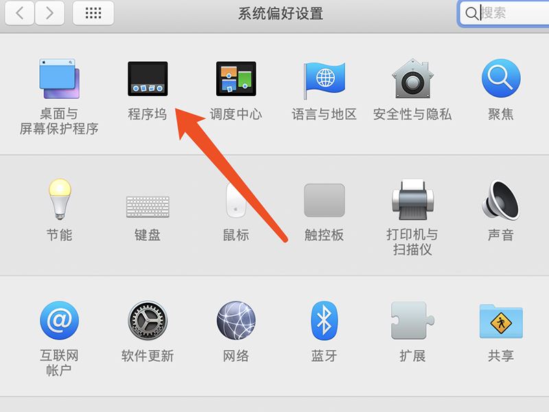 進入系統偏好設置的窗口中,點擊程序塢的選項