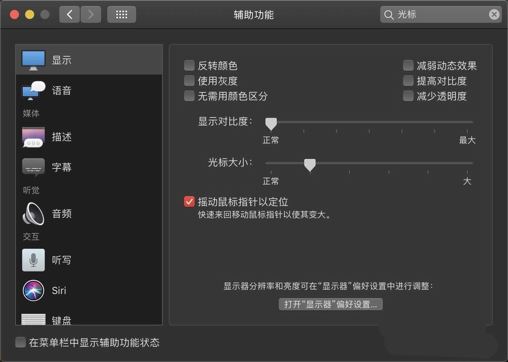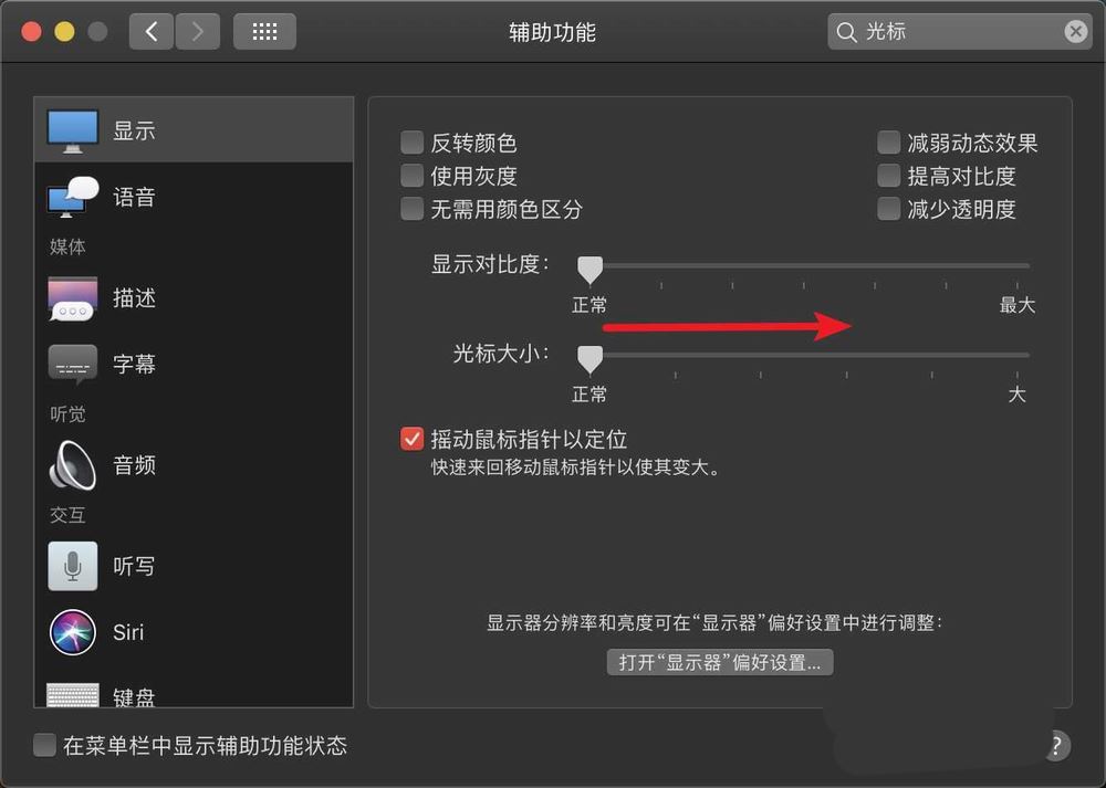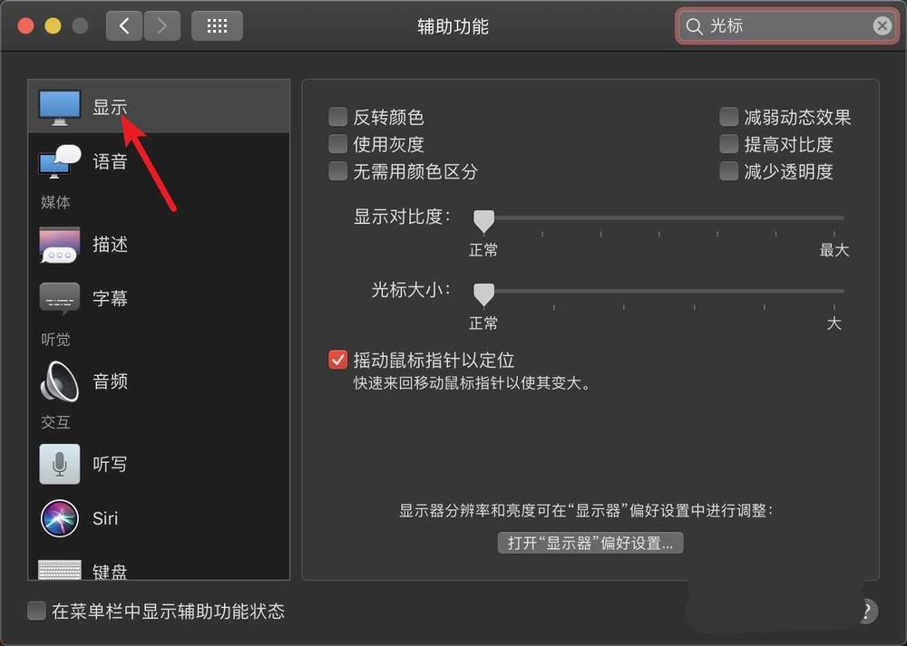 然后點擊顯示,把光標大小朝著右邊拖動。
