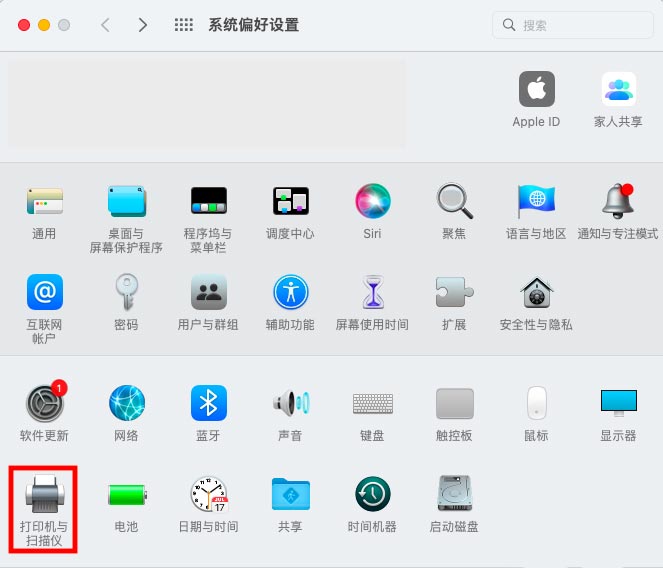 在系統便好設置頁面,選擇【打印機與掃描儀】設置項。