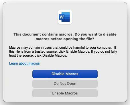 我們了解到,這些可執(zhí)行文件無法在 macOS 上運行。但是,如果用戶的 Word 文件被惡意版本覆蓋,Mac 用戶可能會在在線共享文件時無意中感染其他人。