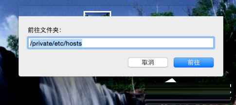 1、我們選擇MAC上方的前往,然后選擇“前往文件夾”在彈出來的指向欄中輸入“/private/etc/hosts”。