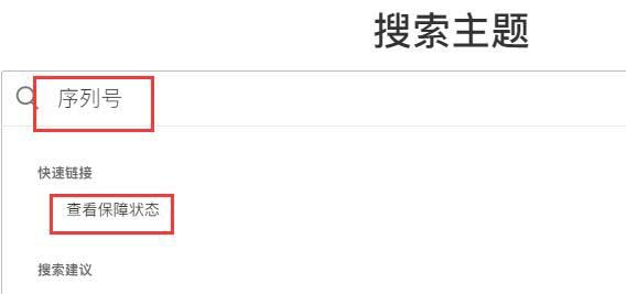 4、隨后下拉頁面,找到搜索主題,在其中搜索“序列號”,打開“查看保障狀態”。