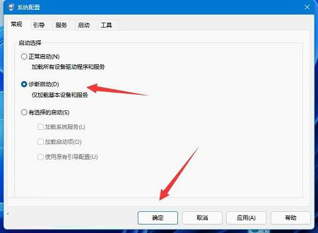 3、然后勾選“診斷啟動”,并點擊“確定”來重啟電腦。