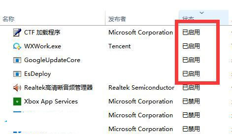 5、最后在其中一個個將已啟用的啟動項給禁用,看看是哪個有問題,把有問題的啟動項關閉即可解決。