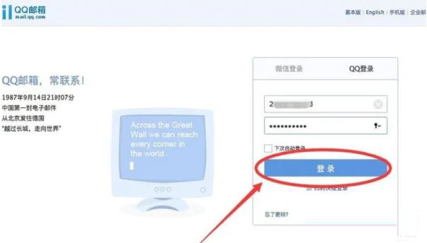2、輸入你的QQ賬號和密碼,然后點擊下面的”登錄“,如下圖所示。