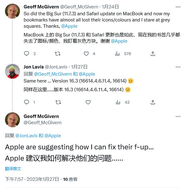 蘋果官方目前并未承認這個 BUG,后續可能會通過額外的 macOS 更新來修復這個問題。我們查詢了國外網友的反饋,發現升級 macOS Monterey 和 macOS Ventura 最新版本的用戶并未出現這個 Safari 問題。