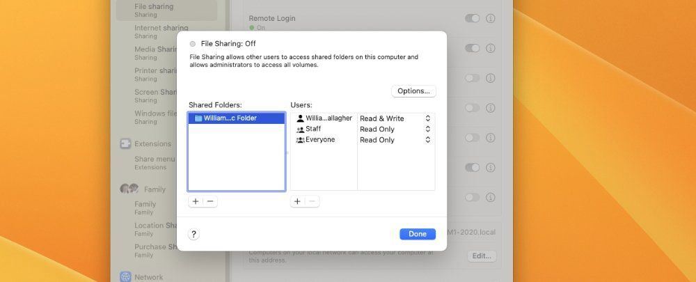 除了個人之外,報道中還指出企業(yè)用戶在升級到 macOS Ventura 也出現(xiàn)了一些問題。具體來說,目前看到的最佳解決方案是,用戶首先關閉文件共享,然后重新啟動 Mac,再重新打開文件共享。