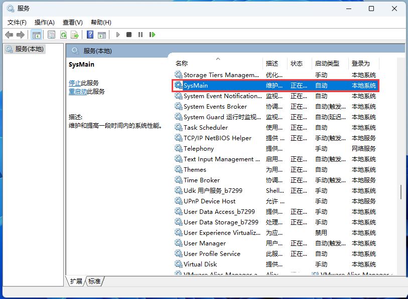 2、服務窗口,找到并選擇【SysMain】然后雙擊打開;