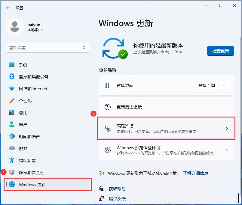 2、設置窗口,左側邊欄點擊【Windows 更新】,右側邊欄點擊【高級選項(傳遞優化、可選更新、活躍時間以及其他更新設置)】;
