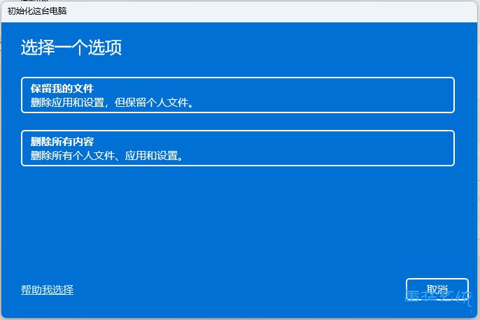 5、初始化這臺電腦,大家可以根據自己的情況選擇,是【保留我的文件(刪除應用和設置,但保留個人文件)】,還是【刪除所有內容(刪除所有個人文件、應用和設置)】;