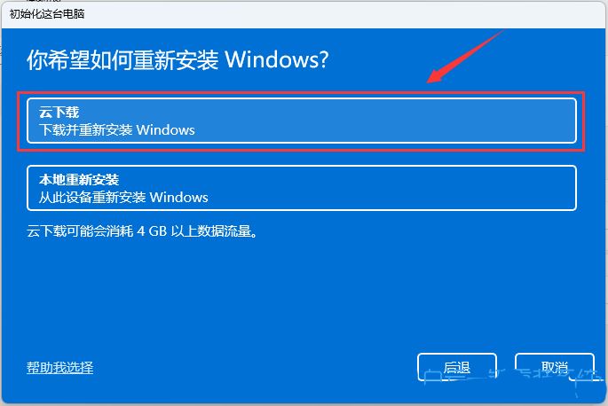6、你希望如何重新安裝 Windows?點擊【云下載(下載并重新安裝 Windows)】;