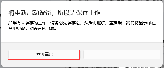 4、提示將重新啟動設(shè)備,所以請保存工作,點擊【立即重啟】;