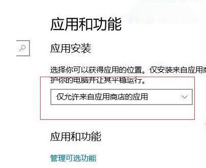 6、如果我們設置僅允許來自應用商店的應用,那么電腦。如果安裝其他位置的應用就不會安裝成功。