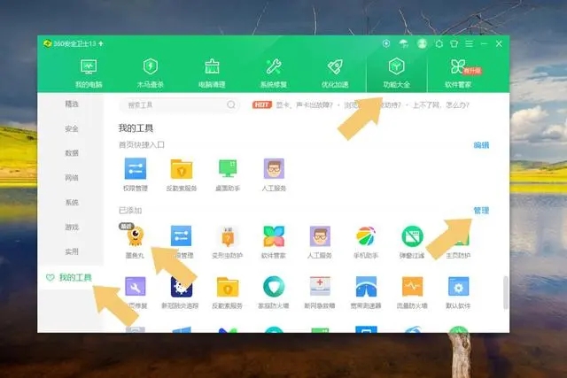 打開(kāi)360安全衛(wèi)士以后,依次點(diǎn)擊功能大全、我的工具,找到墨魚丸視頻軟件。如下圖: