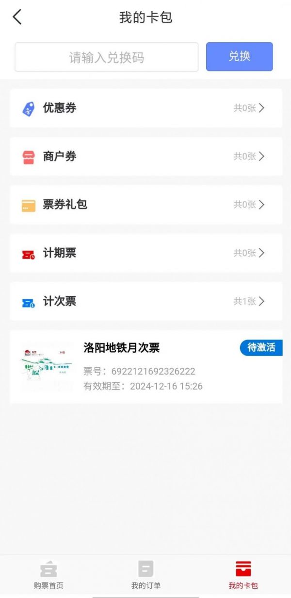 2、在“計期票”或“計次票”內(一日票、三日票顯示在計期票內,月次票顯示在計次票內),點擊所需激活電子票,