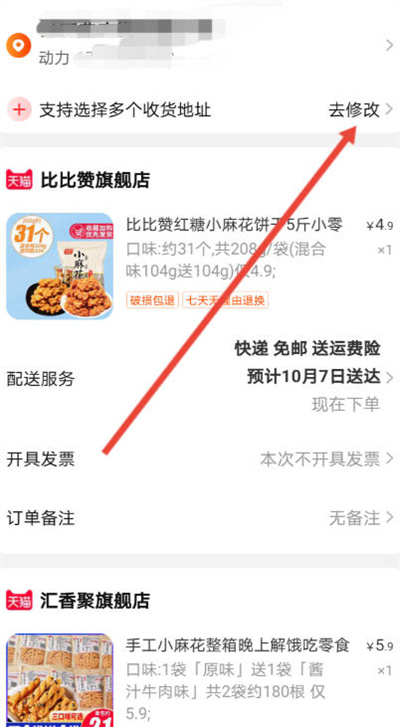 我們進入結算的頁面之后,然后我們點擊里面的去修改的功能,如圖所示。