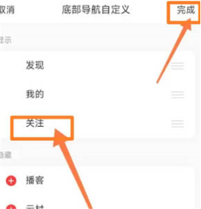 我們進入底部導航自定義之后,然后我們刪除無關的功能,并點擊右上角的完成即可。