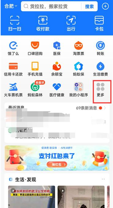 1.首先打開支付寶進入到首頁之后點擊【更多】;