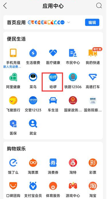 2.然后來到應用中心的頁面中點擊【哈啰】;