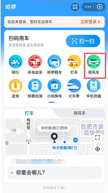 3.接著在哈啰出行的頁面中點擊【順風車】;