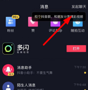1、其實現在邀請好友并沒有太過復雜的流程,我們只需要在“抖音”里面選擇底端的“消息”分類,然后找到新上線的“發起聊天”功能,創建自己的聊天群。