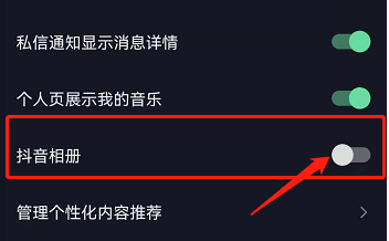4、最后在這找到抖音相冊功能,點擊右側按鈕即可關閉。