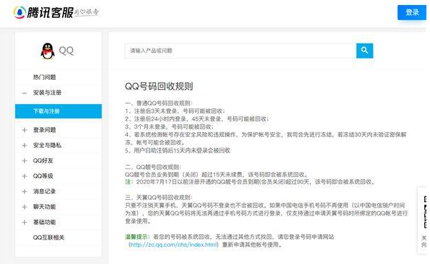 注:2020年7月17日以前注冊開通的QQ靚號會員到期(會員關閉)超過90天,該號碼即會被系統回收。
