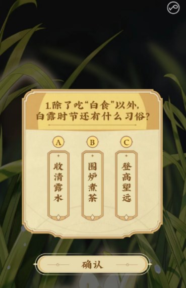 4、完成5道關于白露的題目以后,就能獲得專屬的白食獎勵。