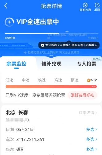 本次搶票經驗總結,知道端午火車票難搶臥鋪更難搶,從放票開始就使用智行搶票,開通了vip加速和3人專人搶票,智行候補顯示搶票率高,預計18日搶票成功,實際搶票失敗