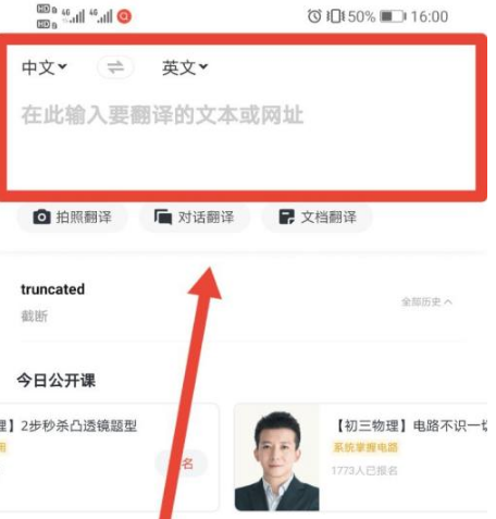 進入翻譯菜單后,我們可以看到內容輸入框。