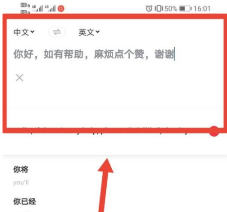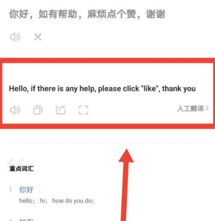 輸入之后,我們可以在輸入框下邊看到翻譯后的英文內容了。